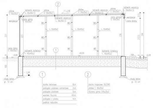 Budynek garażowy blaszany , wolnostojący , 2 stanowiskowy, z pomieszczeniem gospodarczym Wymiary budynku : 8,7 x 5,86 Wymiary bram garażowych : 2,40 x 2,125 Kąt dachu : 1&gre Projekt składa się z części architektonicznej, konstrukcyjnej i wewnętrznej instalacji elektrycznej. Do projektu dołączone są: bezpłatna zgoda na wprowadzenie zmian, oświadczenie projektantów o wykonaniu projektu zgodnie z obowiązującymi normami i przepisami oraz kserokopie uprawnień projektantów wraz z aktualnym wpisem do izby.