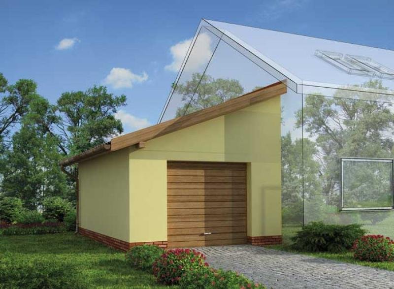 Garaż jednostanowiskowy dostawiany. Idealnie nadający się do dobudowy dla domów i budynków gospodarczych.Do projektu dołączamy bezpłatną zgodę na wprowadzenie zmian, oświadczenie projektantów o wykonaniu projektu zgodnie z obowiązującymi normami i przepisami oraz kserokopie uprawnień projektantów wraz z aktualnym wpisem do izby.