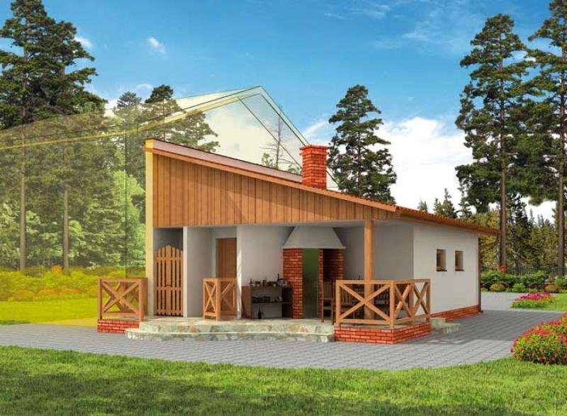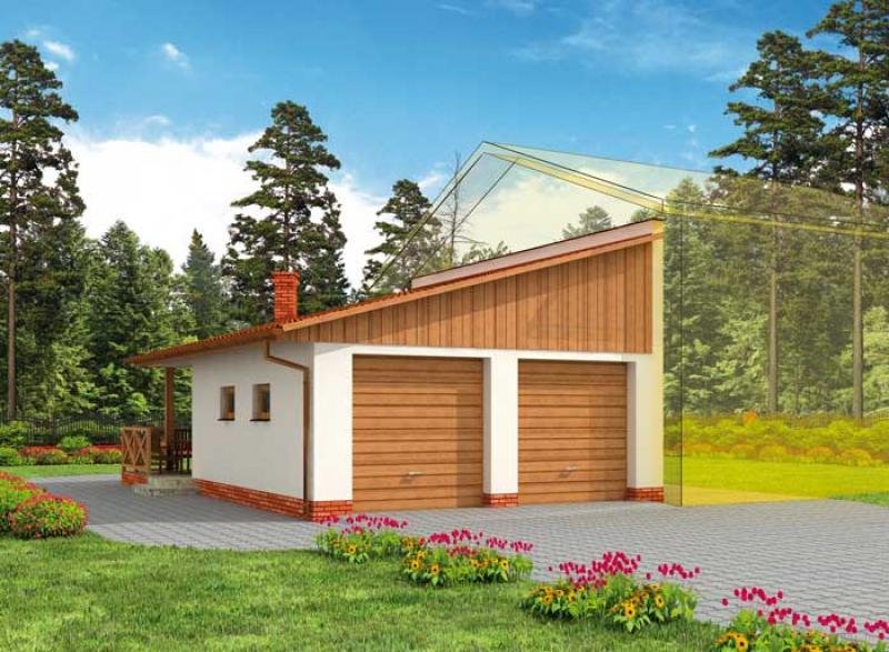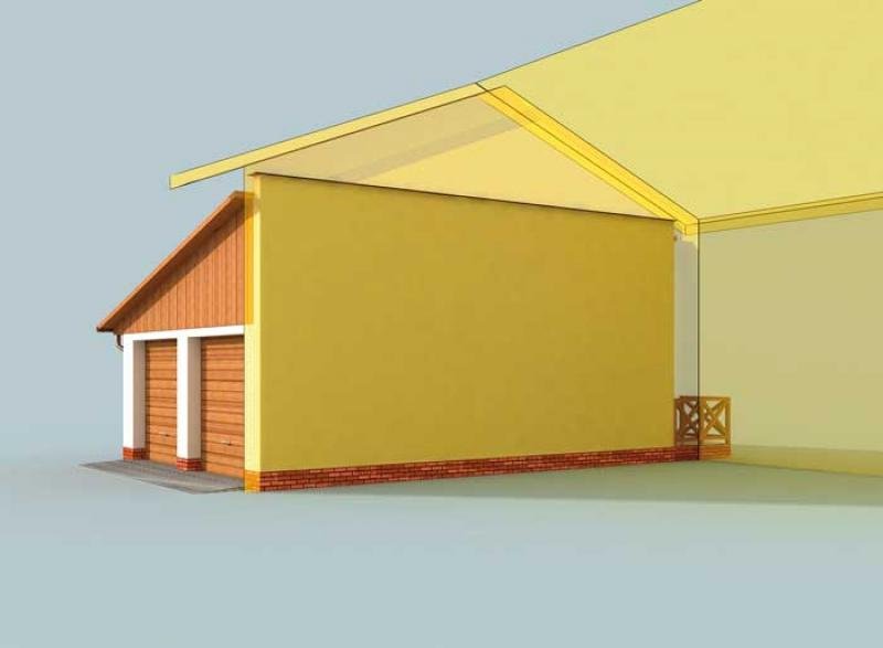 Garaż jednostanowiskowy dostawiany z wiatą i z składem na drewno i odpady . Wymiar bramy wjazdowej 2400x2400. Projekt składa się z części architektonicznej, konstrukcyjnej i wewnętrznej instalacji elektrycznej. W projekcie załączone są podstawowe zestawienie stali, drewna i stolarki okienno-drzwiowej. Do projektu dołączamy bezpłatną zgodę na wprowadzenie zmian, oświadczenie projektantów o wykonaniu projektu zgodnie z obowiązującymi normami i przepisami oraz kserokopie uprawnień projektantów wraz z aktualnym wpisem do izby. W przypadku zamówienia projektu w technologii lekkiej, drewnianej konstrukcji szkieletowej, powierzchnia użytkowa budynku jest o około 7% większa.