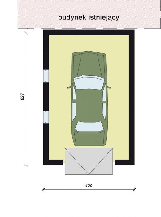 Garaż jednostanowiskowy dostawiany. Idealnie nadający się do dobudowy dla domów i budynków gospodarczych.Do projektu dołączamy bezpłatną zgodę na wprowadzenie zmian, oświadczenie projektantów o wykonaniu projektu zgodnie z obowiązującymi normami i przepisami oraz kserokopie uprawnień projektantów wraz z aktualnym wpisem do izby.