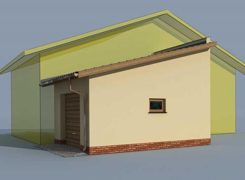 Garaż jednostanowiskowy dostawiany. Idealnie nadający się do dobudowy dla domów i budynków gospodarczych.Do projektu dołączamy bezpłatną zgodę na wprowadzenie zmian, oświadczenie projektantów o wykonaniu projektu zgodnie z obowiązującymi normami i przepisami oraz kserokopie uprawnień projektantów wraz z aktualnym wpisem do izby.