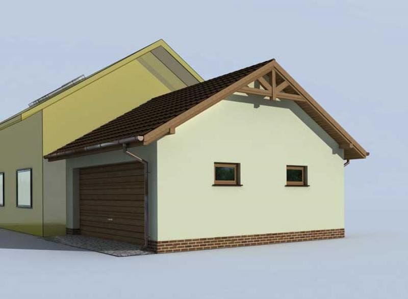 Garaż dwustanowiskowy dostawiany. Idealnie nadający się do dobudowy dla domów i budynków gospodarczych.Do projektu dołączamy bezpłatną zgodę na wprowadzenie zmian, oświadczenie projektantów o wykonaniu projektu zgodnie z obowiązującymi normami i przepisami oraz kserokopie uprawnień projektantów wraz z aktualnym wpisem do izby.
