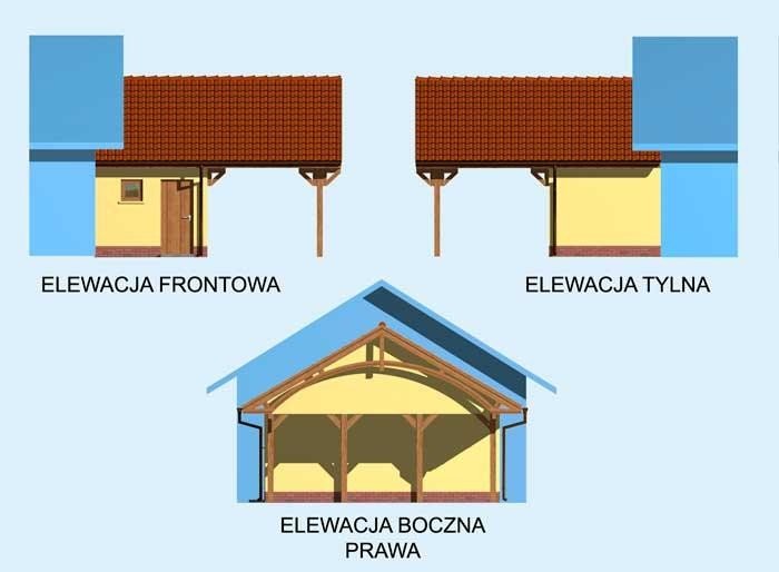 Wiata jednostanowiskowa z pom. gosp. dostawiana. Idealnie nadający się do dobudowy dla domów i budynków gospodarczych.Do projektu dołączamy bezpłatną zgodę na wprowadzenie zmian, oświadczenie projektantów o wykonaniu projektu zgodnie z obowiązującymi normami i przepisami oraz kserokopie uprawnień projektantów wraz z aktualnym wpisem do izby.